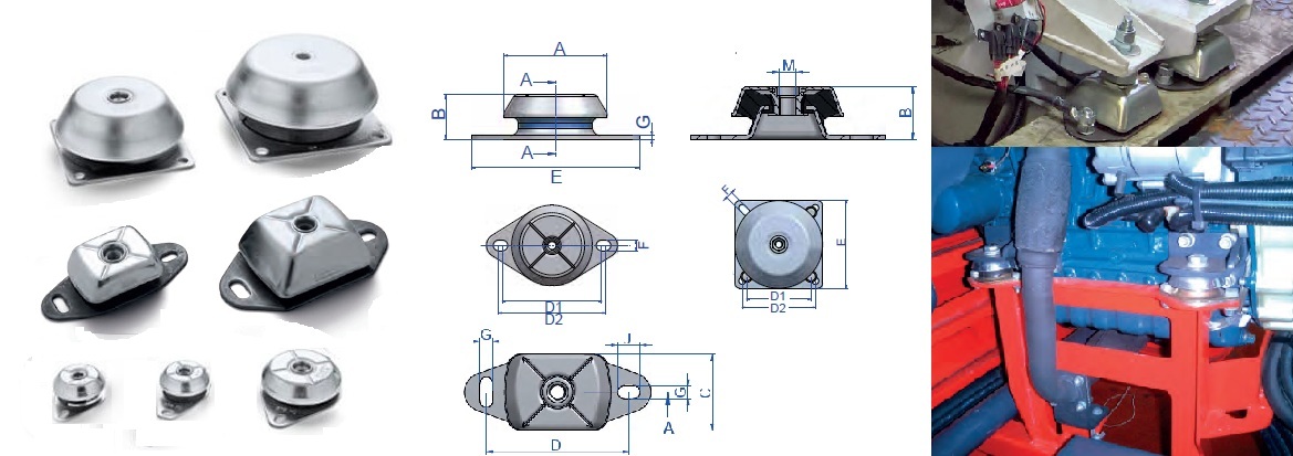 Эта серия виброизоляторов подходит для изоляции подвижных вращающихся механизмов, которые подвергаются воздействию радиальных и осевых ударных нагрузок, воздействию дизельного топлива, масла и природного воздействия. Применяется, где требуется высокая степень виброизоляции.